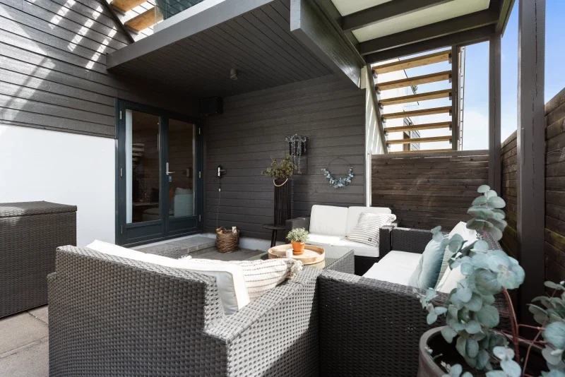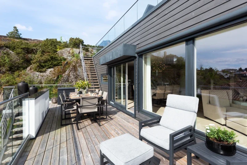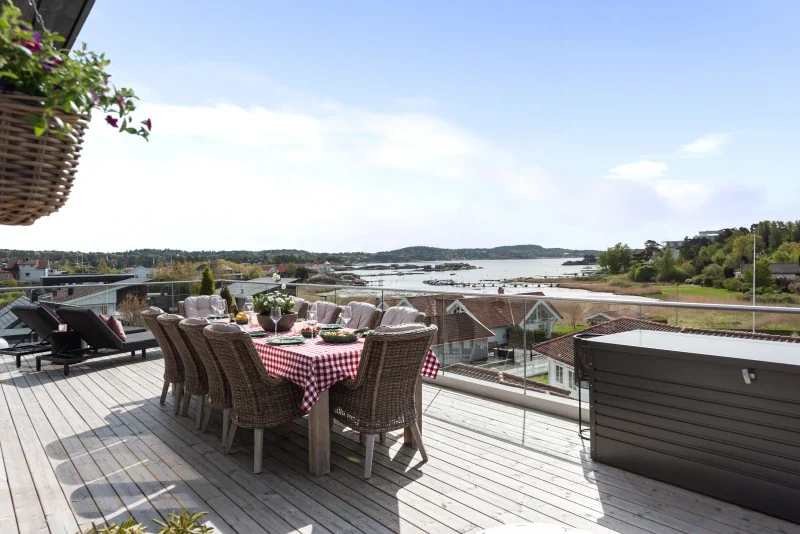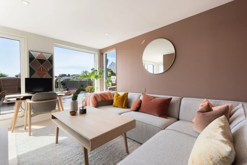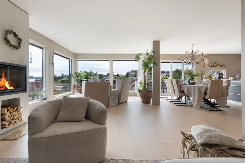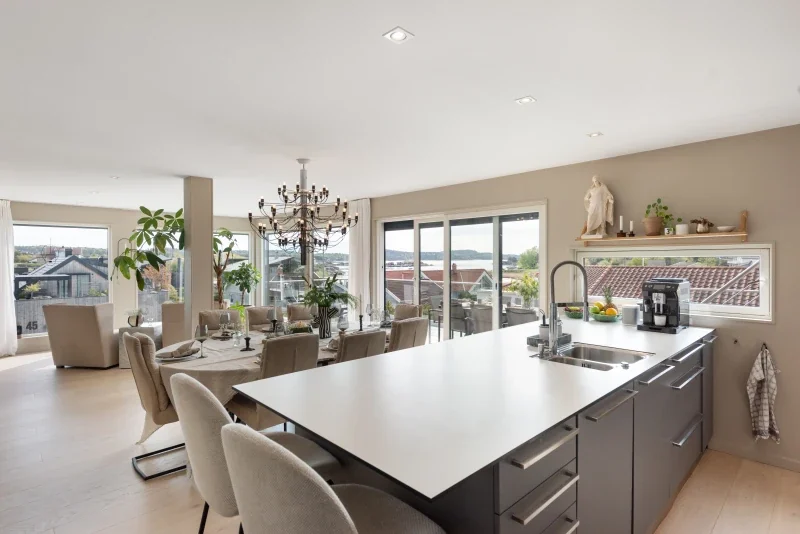 Her får man drømmebeliggenhet, meget god standard, rom for alle og ikke minst en fantastisk stue og takterrasse med panoramautsikt i toppetasjen!
