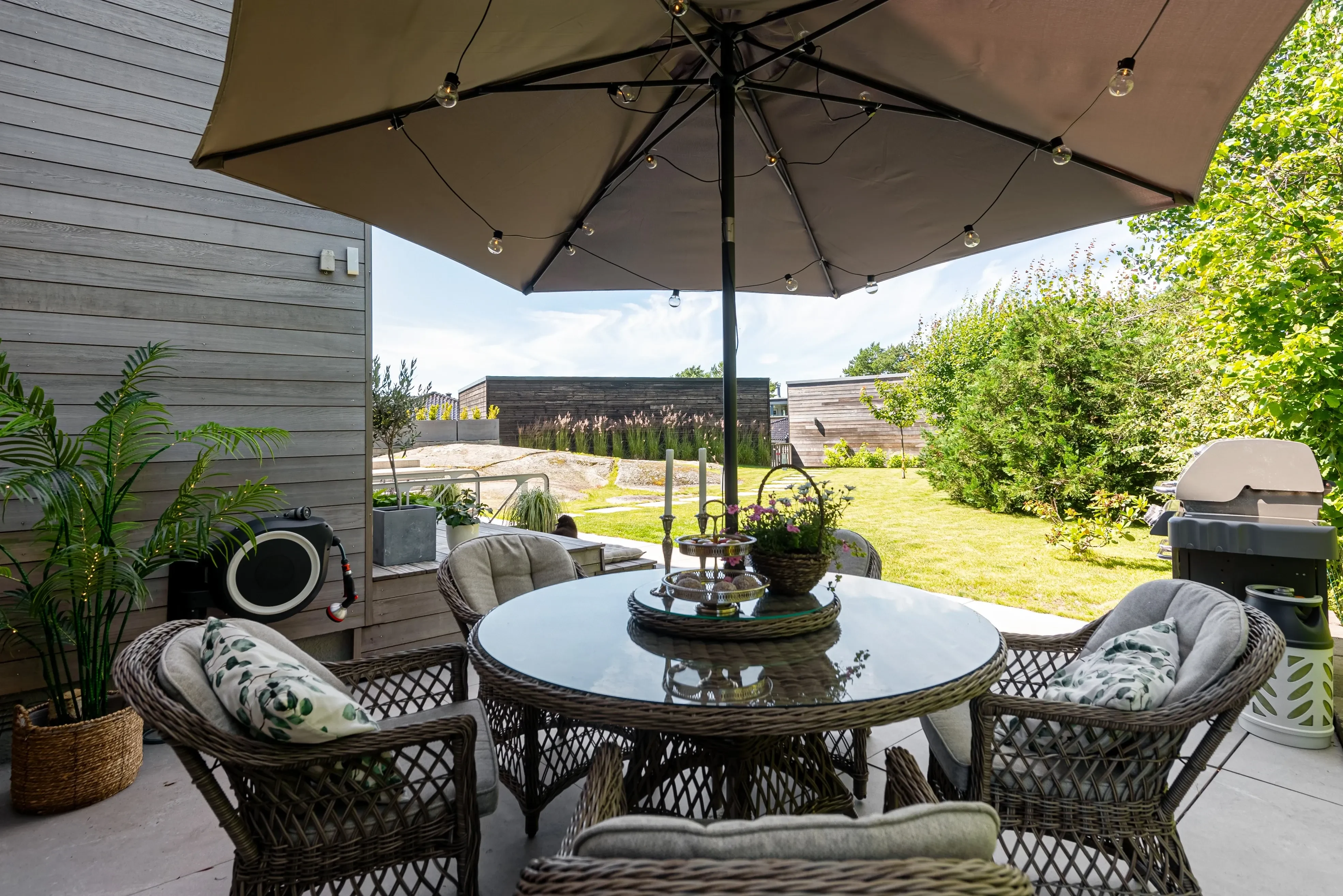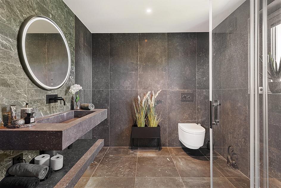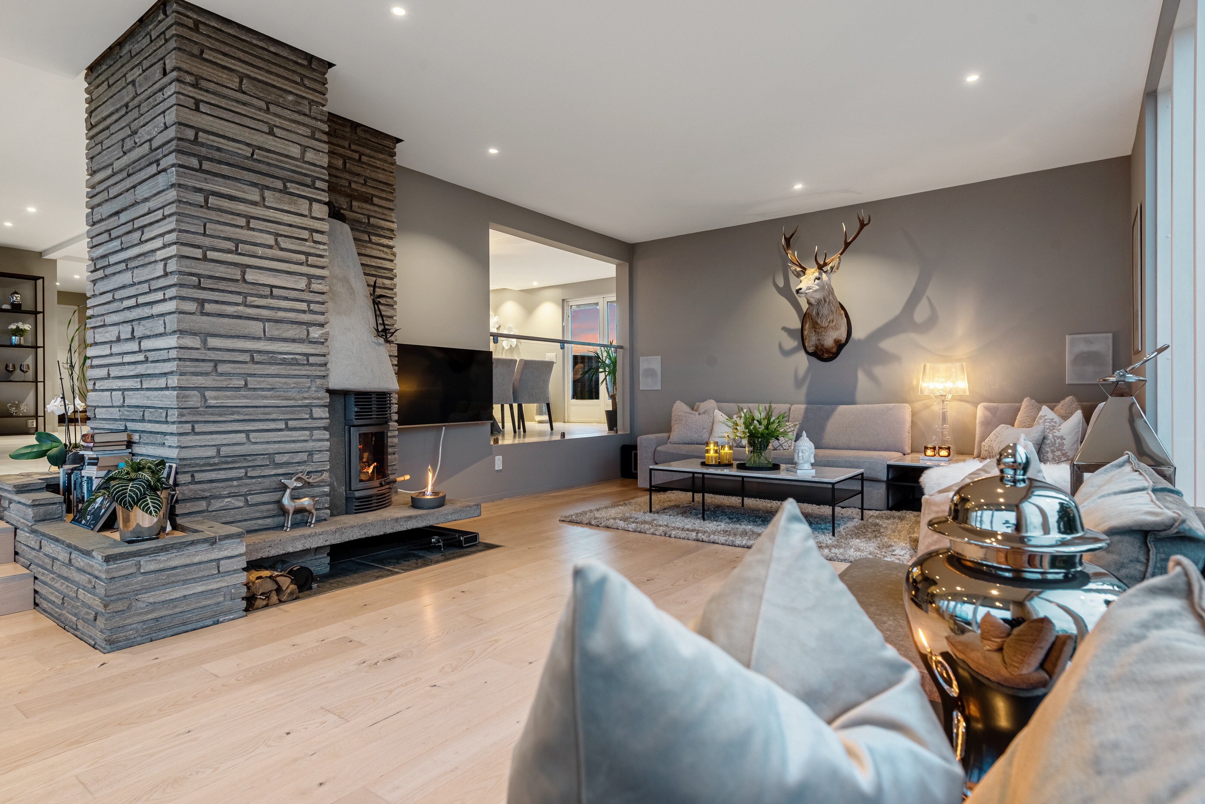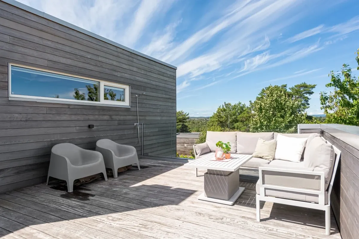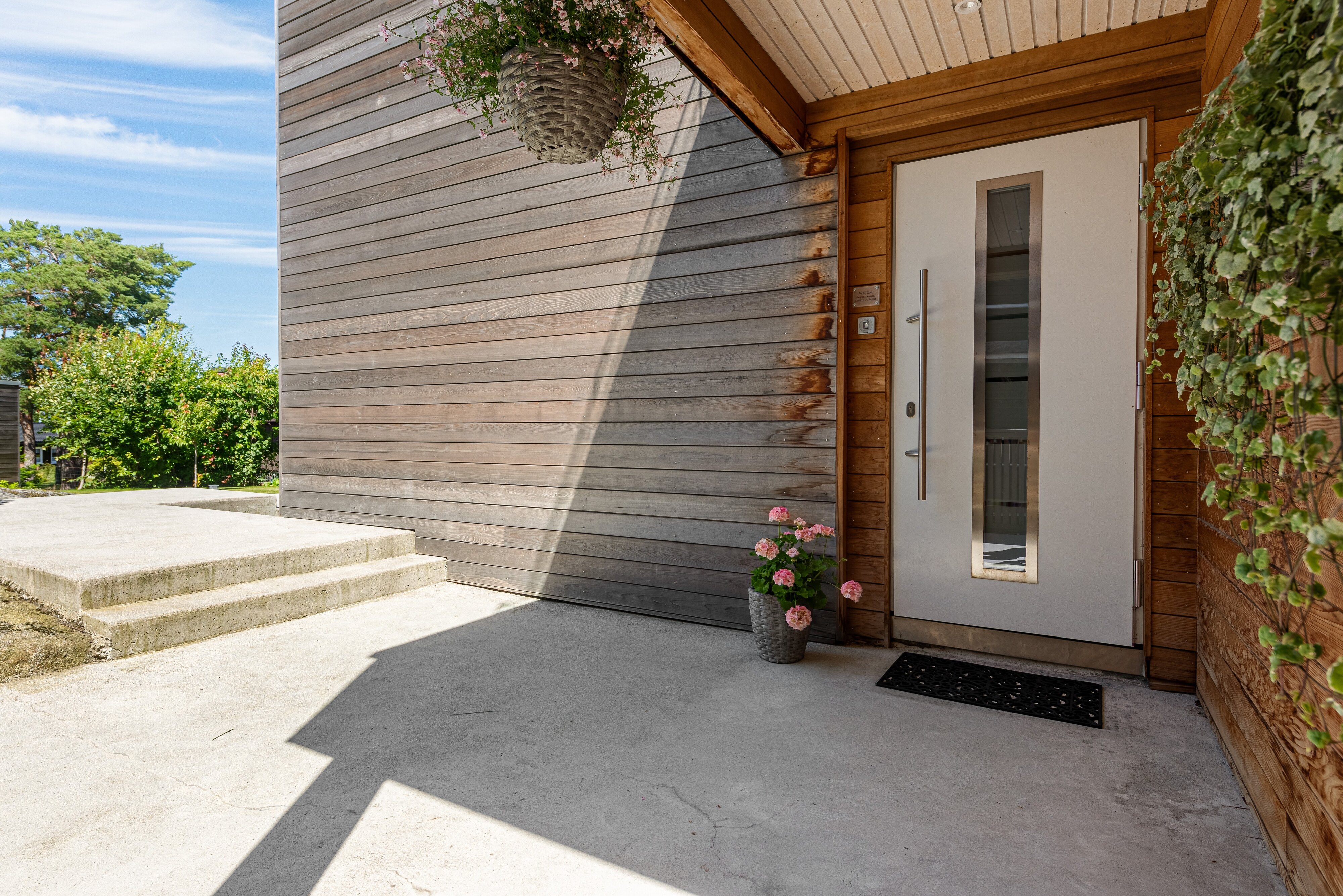 Gjennomgående høy standard og kvalitets materialer er i høy grad benyttet både utvendig og innvendig. Boligen er kledd i Cedertre, liggende bordkledning. Camaru terrassegulv og lekkre stein- og skiferheller. Spennende planløsning over 3 plan, meget innholdsrikt med mange bruksmuligheter.