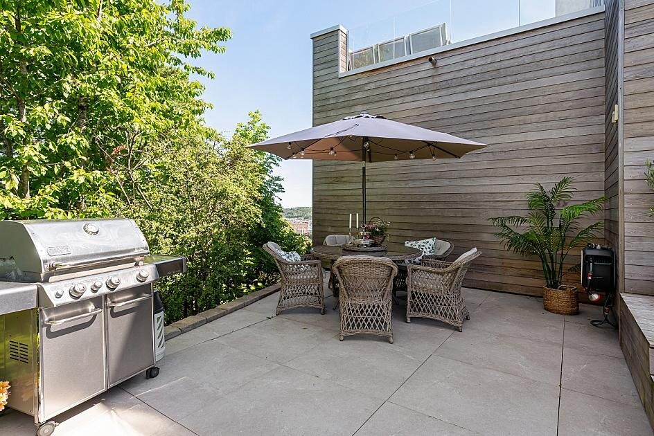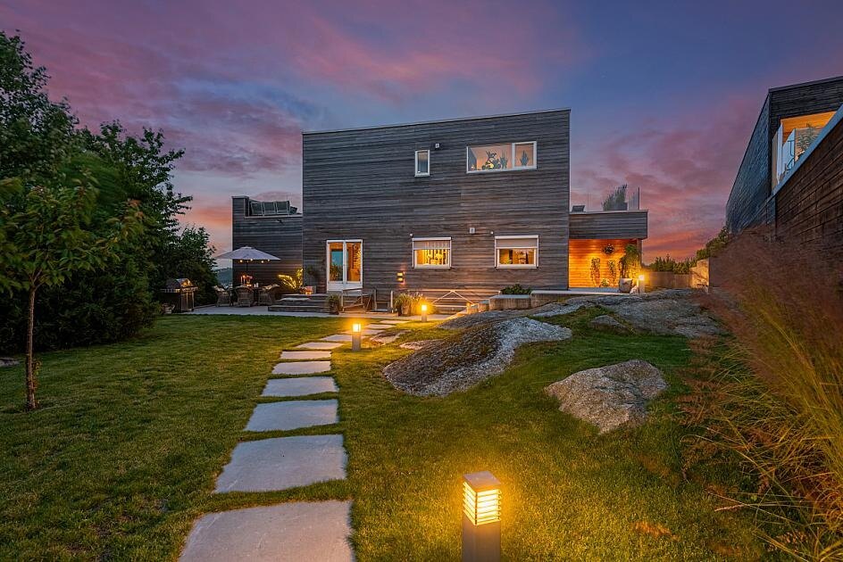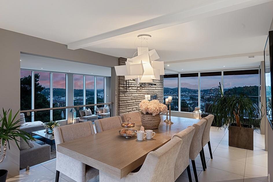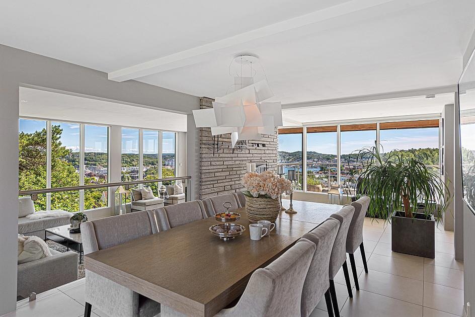 En moderne og tidsriktig villa beliggende på en av Sandefjords høyeste topper, panorama over by, havnen og langt ut fjorden. Sol fra opp, til sent på kveld, nesten i enden av en stille blindvei. Særdeles attraktiv boområde og med gangavstand til det meste. Boligen har blitt etter byggeår, restaurert, påbygget og løftet til et moderne og stilrent hjem.