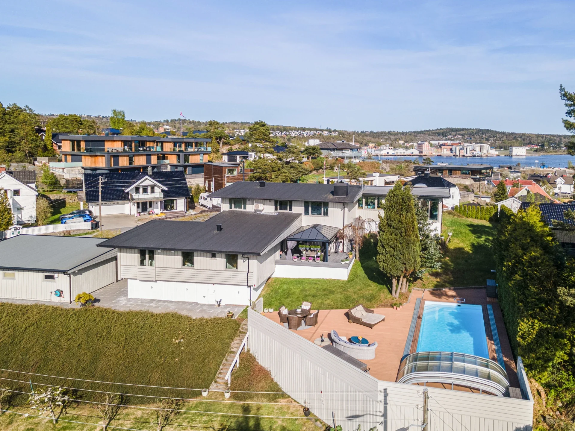 Funkisdrøm m/nydelig utsikt over fjorden og gode solforhold 214 m²