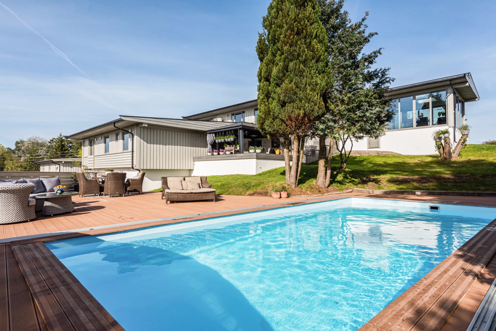 Nyrenovert, herskapelig sveitservilla med praktfull tomt og nydelig fjordutsikt 226 m²