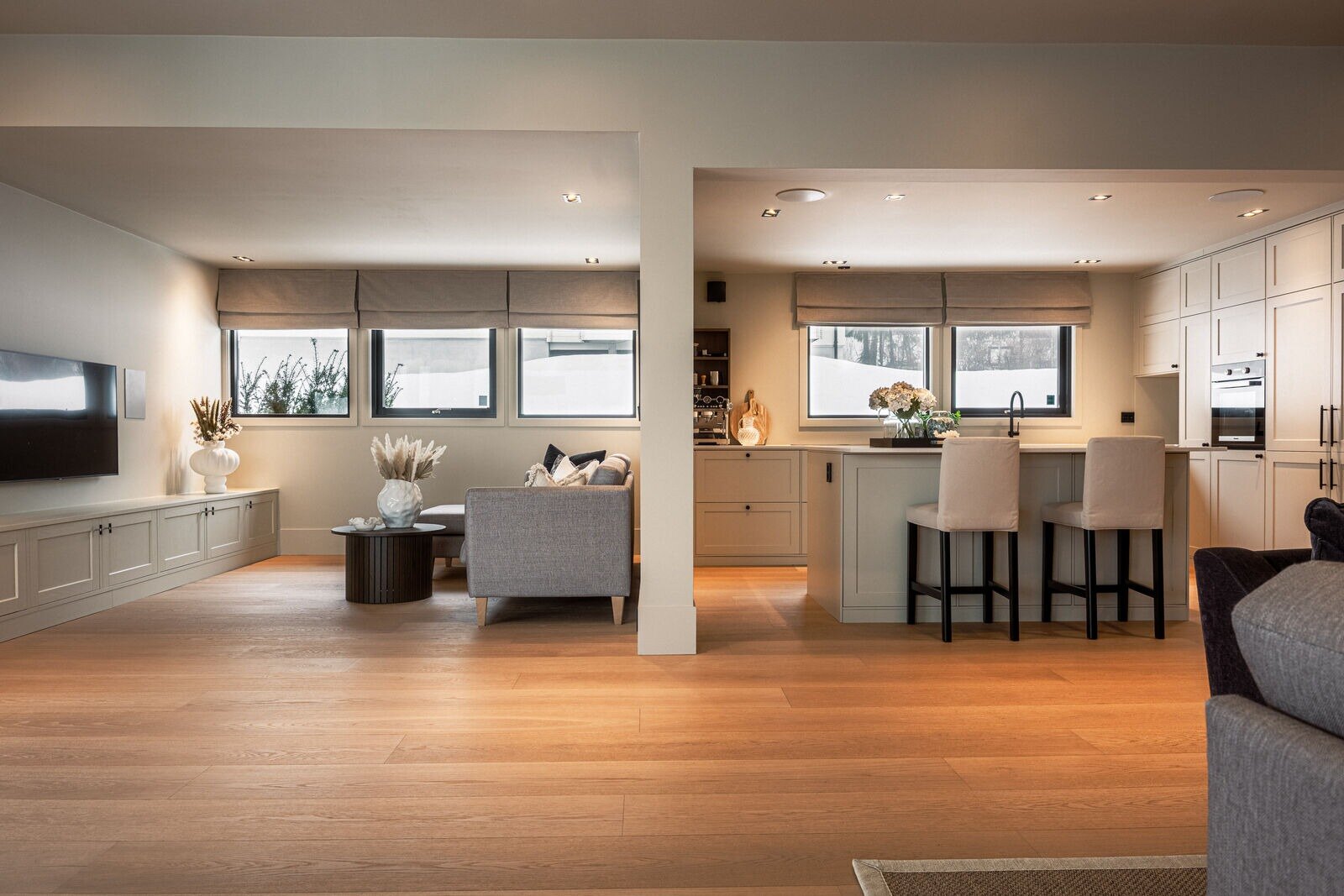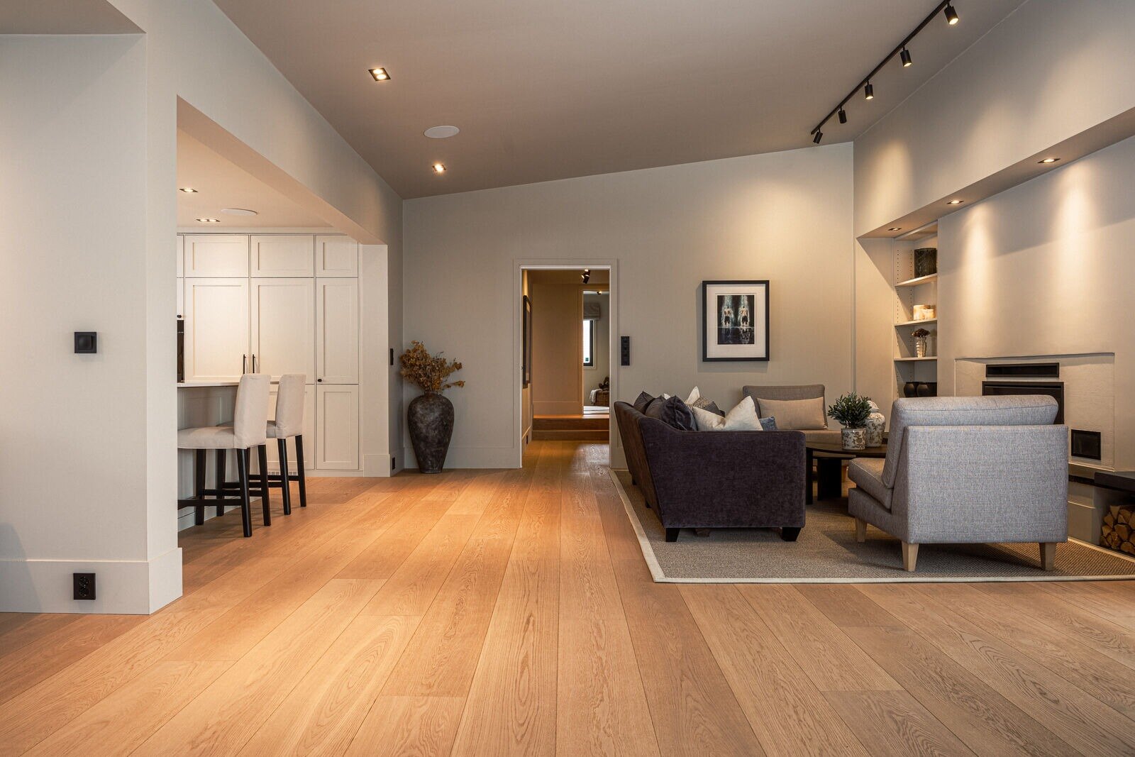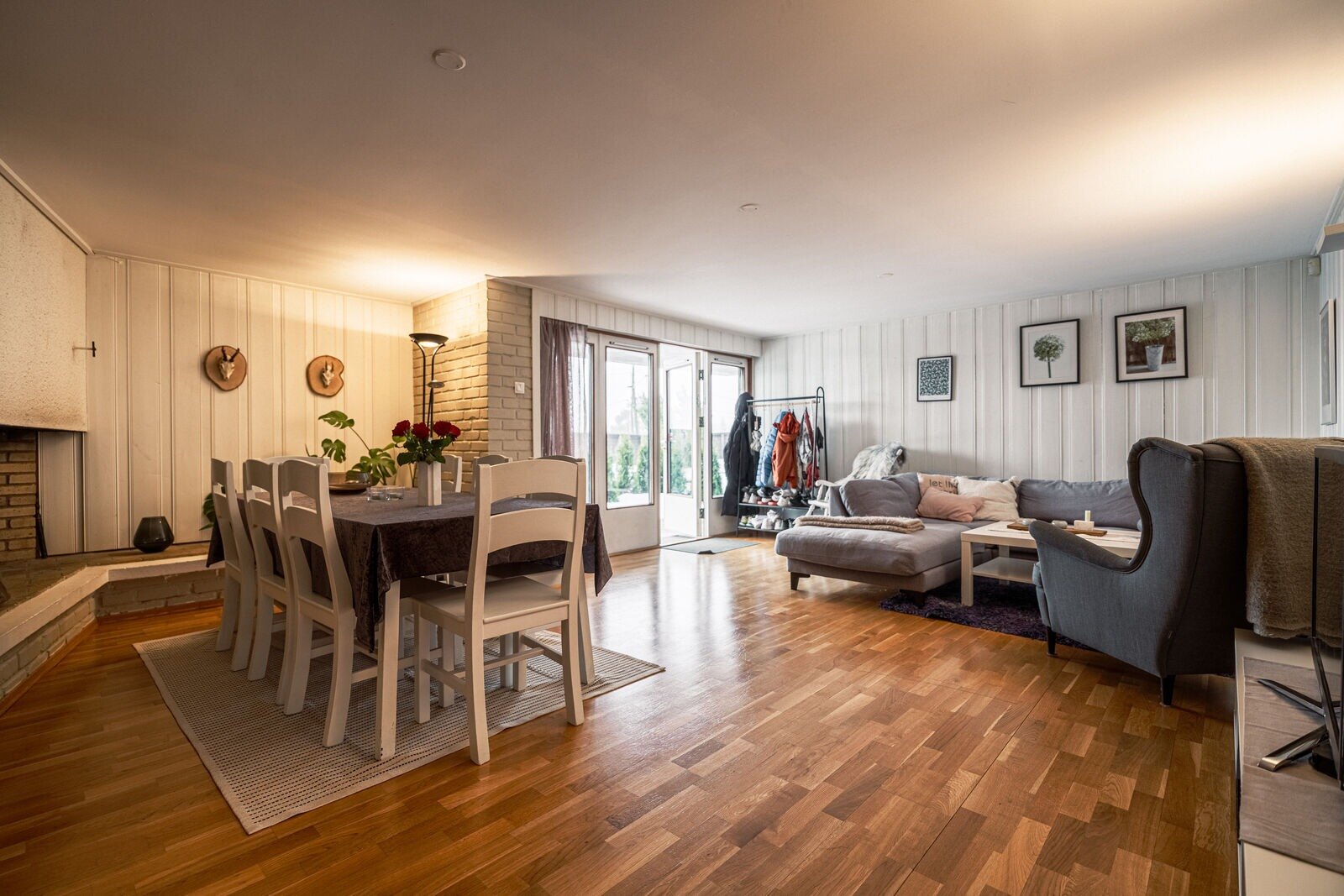 Hoveddelen byr på romslige oppholdsrom med en planløsning som fungerer godt i hverdagen. Store vindusflater slipper inn rikelig med dagslys og gir en lys og behagelig romfølelse.