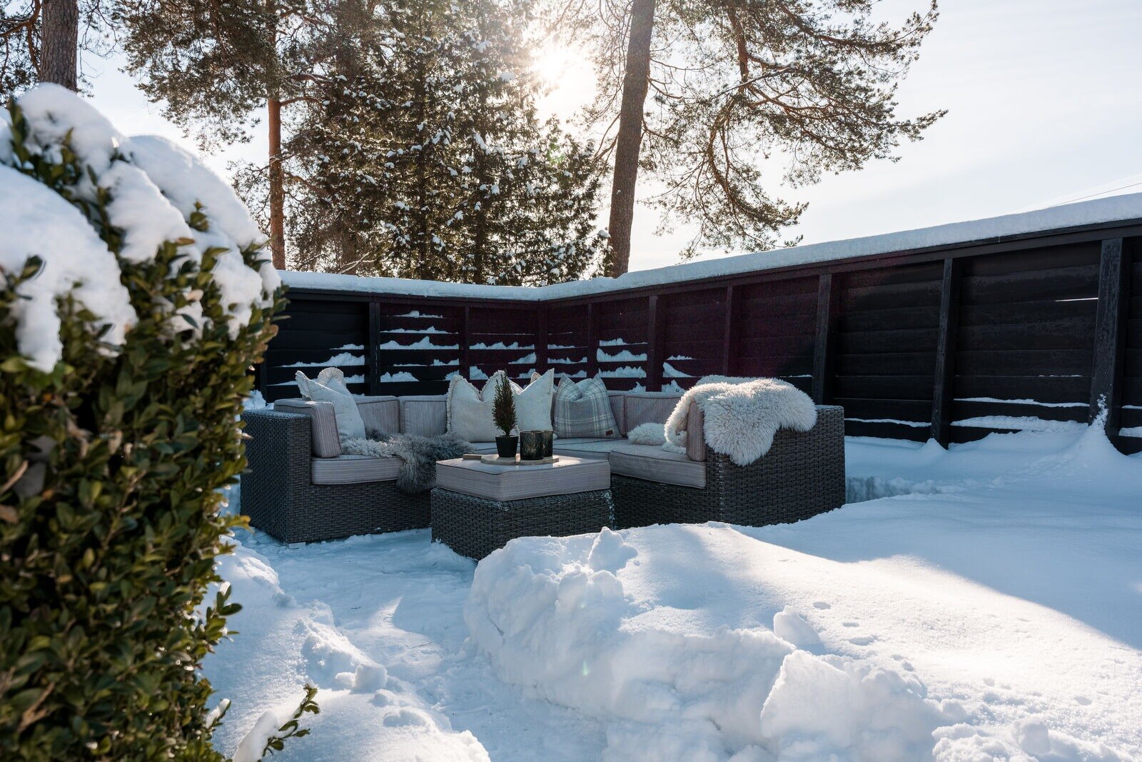 Tomten er opparbeidet med flere uteplasser og gode soner for opphold. Her kan man følge solen gjennom store deler av dagen og nyte kveldssolen i rolige omgivelser.