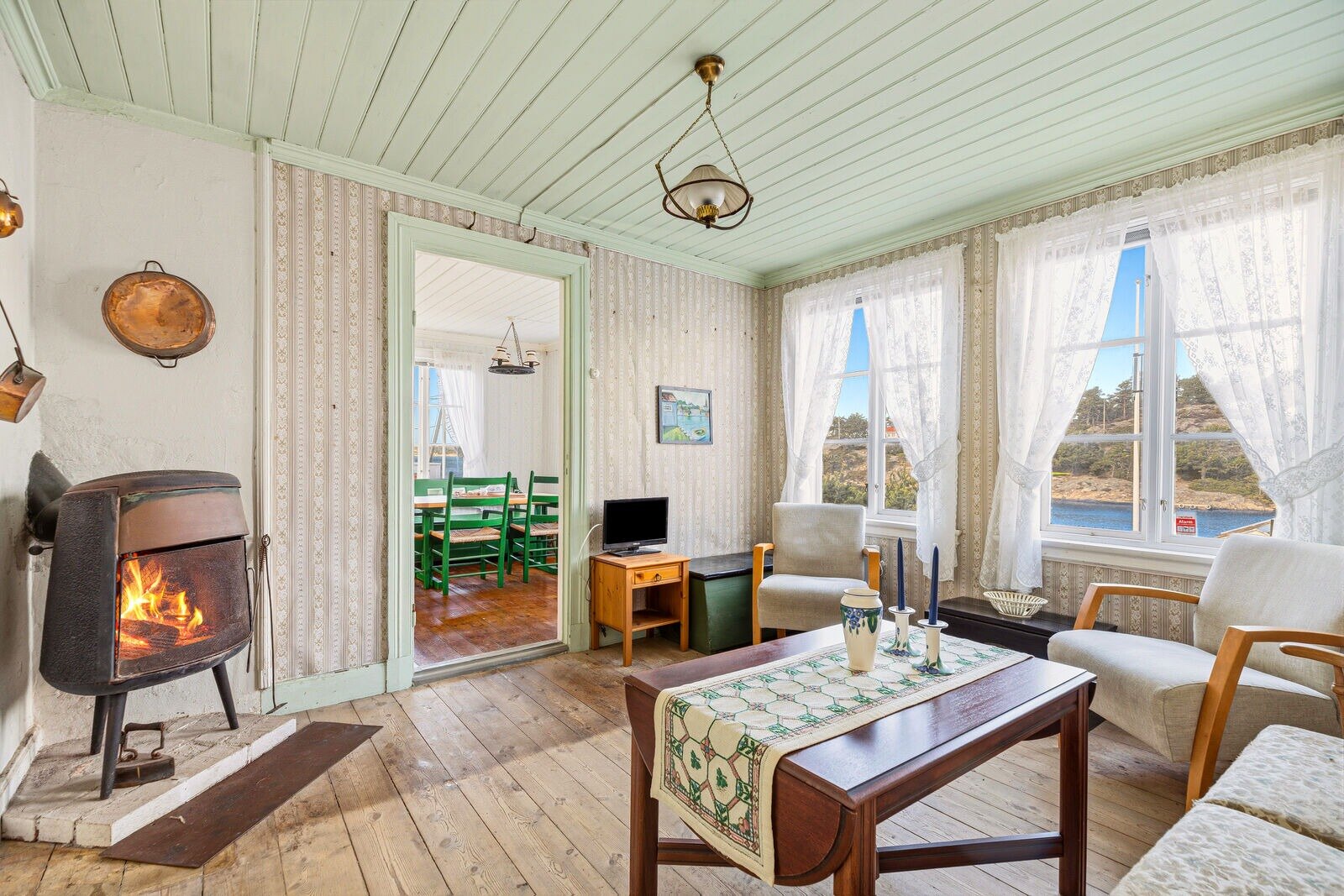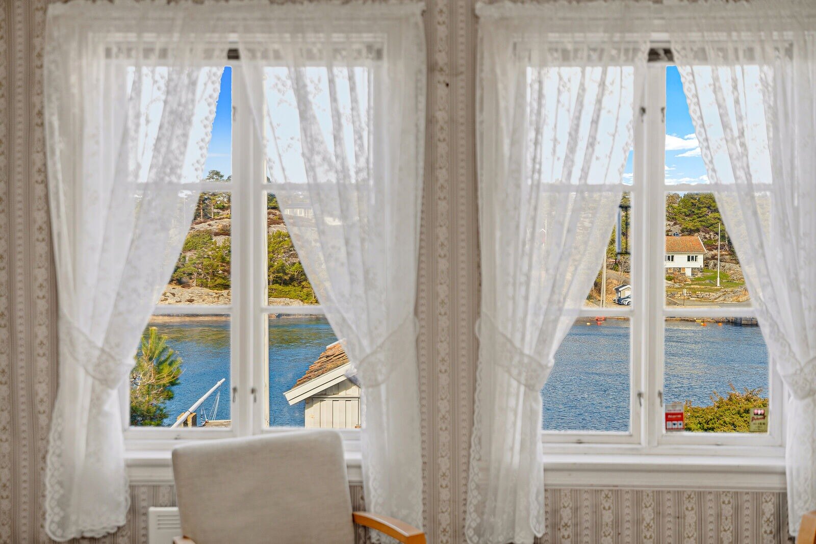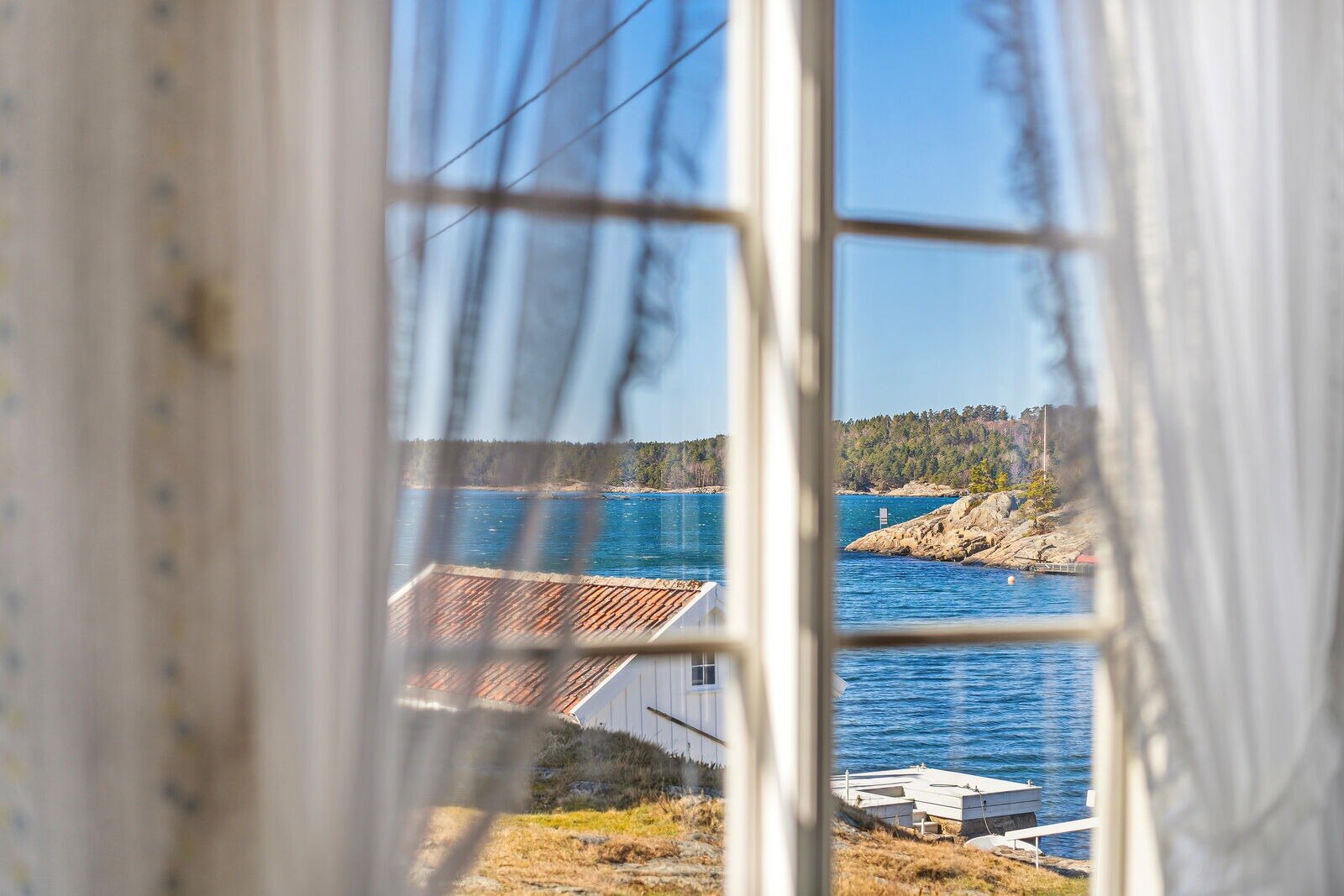 Eiendommen har en særdeles attraktiv beliggenhet i første rekke mot sjøen, med panoramautsikt over vakker skjærgård og optimale solforhold.