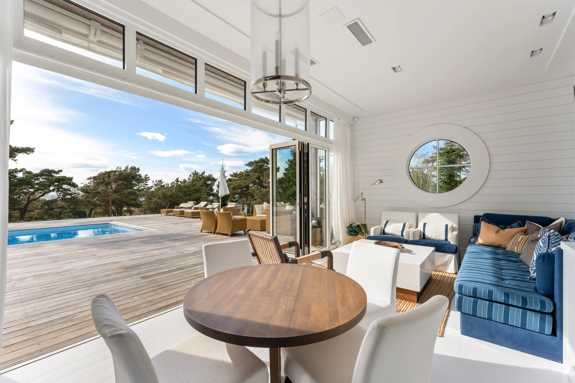 Eiendommen byr på totalt 15 soverom og hele 26 sengeplasser, noe som gjør den ideell både for storfamilier og gjester. Både interiør og uteområder er designet av H. Hennie, med vekt på gjennomgående høy standard og en sømløs overgang mellom inne- og uterom.